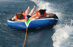 Thursday night everyone went to Lake Michigan to go waterskiing/kneeboarding/tubing (except me, and I had Quinn duty). It was a beautiful evening and Matt had made arrangements with his cousin Brian to go out on the water. I hope Doug puts the great pictures of Hannah and Emily riding the tube with this letter. I think their faces are great! I understand that Hannah does a great cartwheel dismount from the tube. I wish I could have seen that! Dad was sore again -- he may be getting older, but he's not giving up yet!